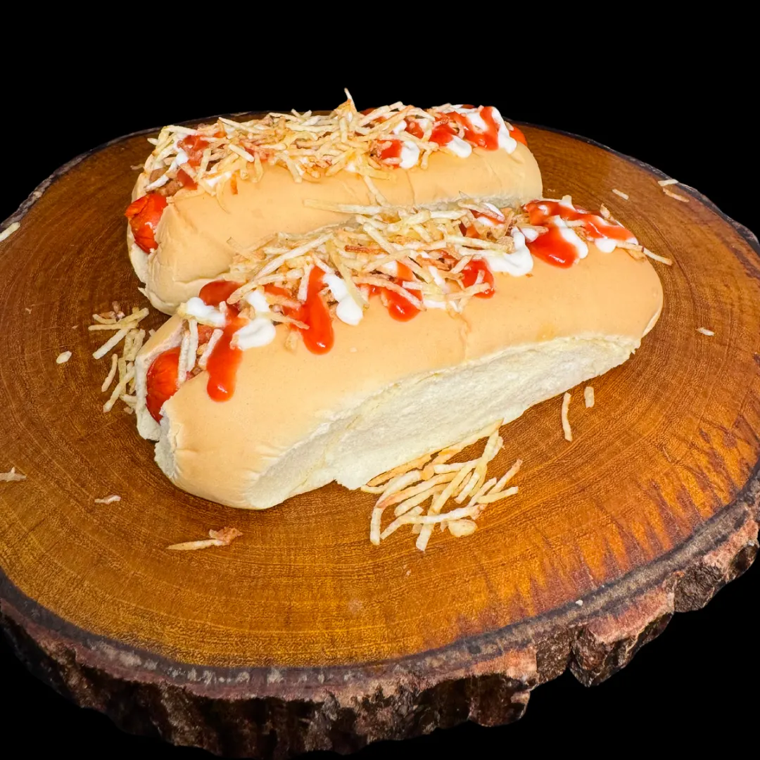 02 HOT DOG TRADICIONAL PÃO DE LEITE, SALSICHA PERDIGÃO, CARNE MOIDA, BATATA PALHA, CATCHUP E MAIONESE ********* COM EMBALAGEM *******