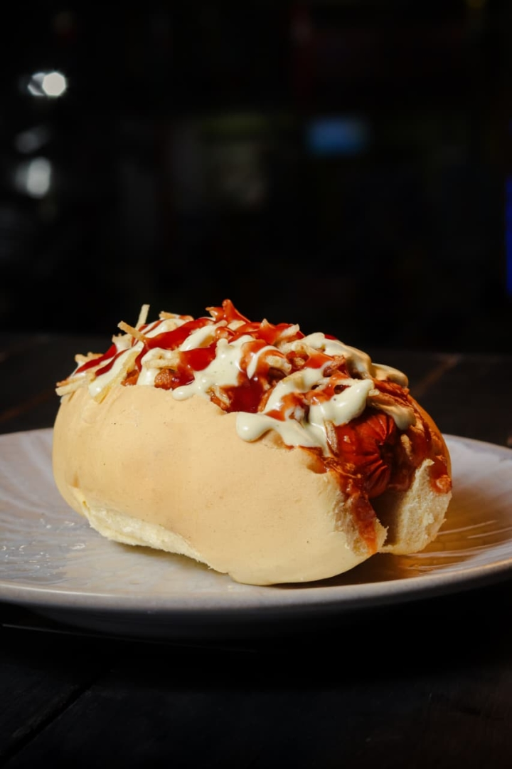 PÃO DE LEITE, SALSICHA PERDIGÃO, CREME DE CARNE DE SOL E NATA, MAIONESE, BATATA PALHA ********* COM EMBALAGEM *******